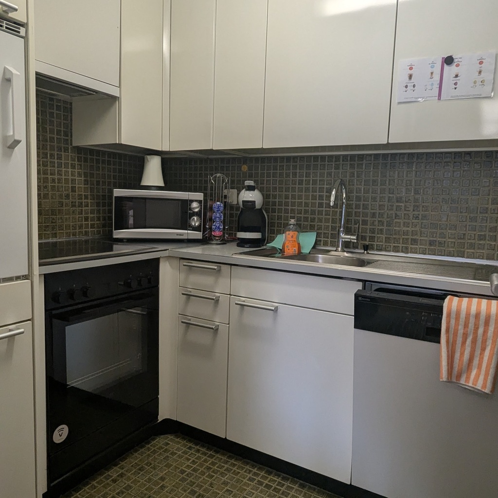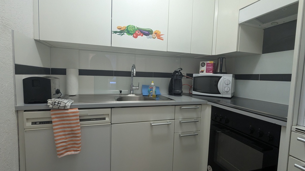 Apartment is fully equiped with everything you need for a comfortable holiday: dinning table, dishwasher, stove, oven, fridge, freezer, toaster, coffee maker, cuttlery, glasses, towels.
